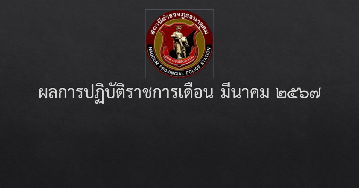ผลการปฏิบัติราชการเดือน มีนาคม 2567 26 มีนาคม 2567 โดย naudom_wpdb / ผลการปฏิบัติราชการ งานป้องกันปราบปราม รายงานการปฏิบัติงานป้องกันปราบปราม ประจำเดือน มีนาคม 2567 ในรูปแบบ Word คลิกที่นี้ งานสืบสวน รายงานการปฏิบัติงานสืบสวน ประจำเดือน มีนาคม 2567 ในรูปแบบ Word คลิกที่นี้ งานสอบสวน รายงานการปฏิบัติงานสอบสวน ประจำเดือน มีนาคม 2567 ในรูปแบบ Word คลิกที่นี้ งานอำนวยการ รายงานการปฏิบัติงานสอบสวน ประจำเดือน มีนาคม 2567 ในรูปแบบ Word คลิกที่นี้ งานจราจร รายงานการปฏิบัติงานจราจร ประจำเดือน มีนาคม 2567 ในรูปแบบ Word คลิกที่นี้ FacebookFacebookXXLINELine